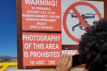 A strange, “Dorito-shaped” aircraft was spotted flying above the highly secretive Area...